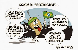 O principal partido de oposição embarcou na aventura dos golpistas pela mão do senador Aécio Neves, que foi demovido do plano de impeachment pelo ex-presidente Fernando Henrique Cardoso na semana passada. Agora, precisa de um discurso consistente para evitar o constrangimento de se haver associado aos aloprados que seguem para Brasília.