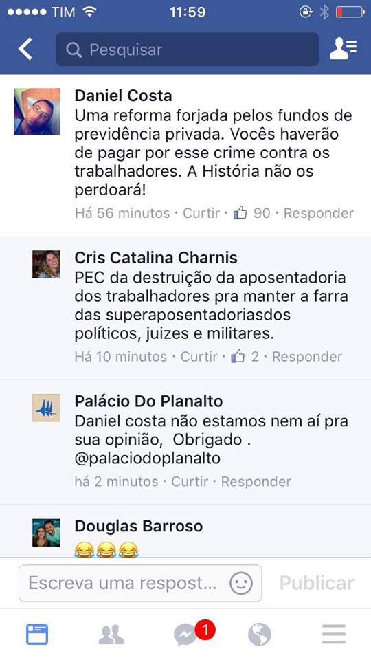 “Não estamos nem aí”, diz o governo no Facebook a homem que criticou aprovação da PEC do teto