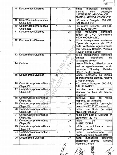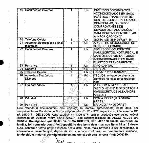 . “Folhas impressas contendo planilhas com indicações para cargos federais, com remuneração e direcionamento em qual partido político pertence ou foi indicado”.