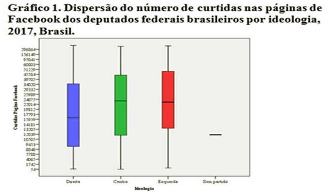 Se se olha para categorias específicas e o número das comunidades de seguidoras(es) das páginas de deputadas(os) de ideologias diferentes, por exemplo, é possível sublinhar que deputadas(os) de centro têm uma mediana de seguidores um pouco maior que deputadas(os) de esquerda, e por último estão os deputados de direita.