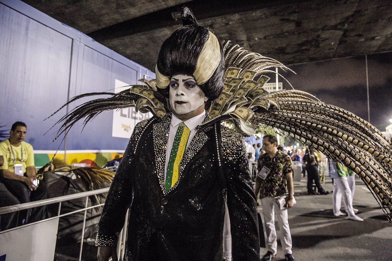 Chegou a negar que estivesse retratando Temer e que sua fantasia “representa um sistema”.